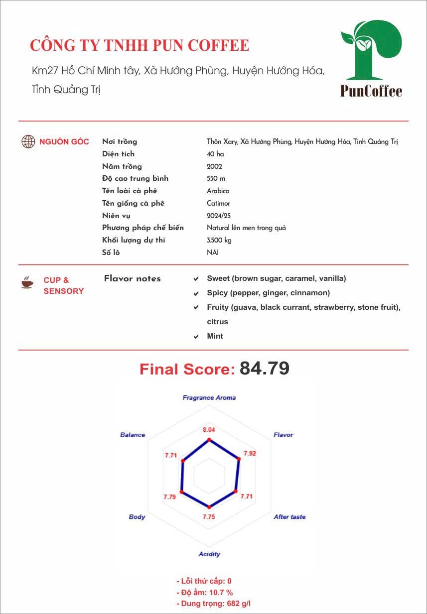 Phương pháp chế biến cà phê natural lên men, đã xử lý được nhược điểm mà vùng cà thấp đang mắc phải. Tuy nhiên về lý thuyết là vậy, và thực tế là câu chuyện chính là sự quyết tâm nâng tầm thương hiệu cà phê Khe Sanh của Pun Coffee nói riêng và một số nhà chế biến cà phê đặc sản Quảng Trị nói chung. Chúng tôi đã nâng niu hạt cà phê của mình bằng tất cả niềm tin, sự cố gắng và tri ân với những người thầy đã không quản ngại ngược đường ngược gió đến nơi này.