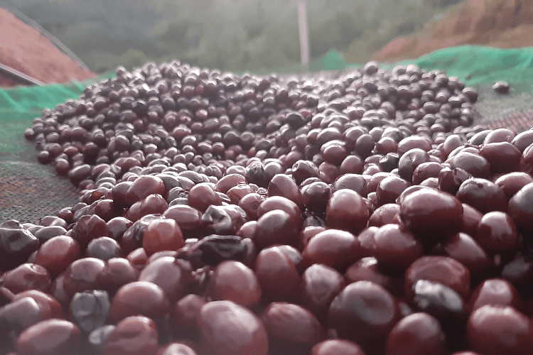 2.Kỹ thuật phơi cà phê lên men yếm khí nguyên quả.