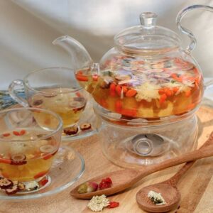 Mình không đề cập trà sữa ở đây, nhưng trà cũng là thức uống cần có trong menu quán cà phê của bạn. Ngày nay trà đã được biến tấu nhiều, không còn bó hẹp xung quanh như trà xanh, trà gừng, trà bạc hà…mà mở rộng ra là trà trái cây, trà hoa, trà hỗn hợp được pha trong những chiếc ấm thủy tinh xinh xắn thu hút khách hàng.
