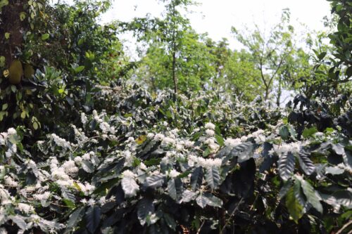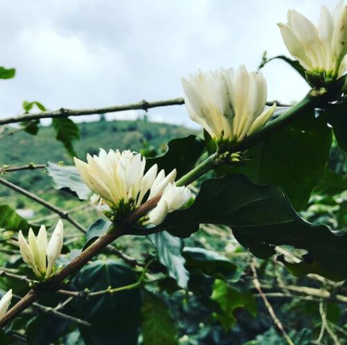 Thì Hướng Phùng tháng 4 về bông cà phê trắng xóa, ngỡ đêm qua Băng giá rũ tuyết phơi áo choàng…để núi đồi đẫm hương dịu ngọt – trắng sáng ngời bừng một góc Trường Sơn.
