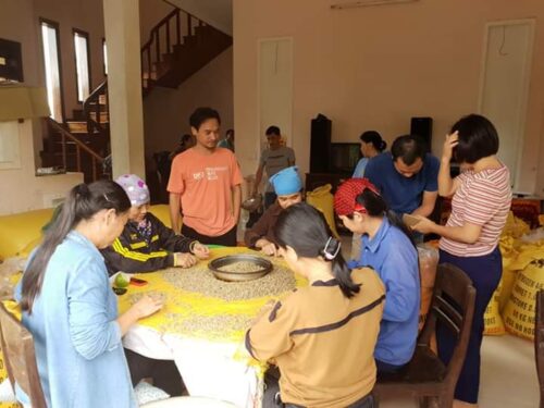 Xay thóc và nhặt lỗi cà phê là công đoạn không thể thiếu trong toàn bộ chuỗi sản xuất cà phê nhân xanh của Pun Coffee, niên vụ 2019-2020 Pun Coffee sản xuất cà phê nhân xanh với 3 phương pháp chế biến là natural, honey, wash. Đơn hàng đầu tiên được xuất đi vào tháng đầu tháng 3/2020, thời điểm này nguy cơ dịch corona bùng phát, việc làm hàng và xuất hàng đi phải gáp rút cho kịp tiến độ. Cà phê nhân xanh chế biến natural cho đối tác tại thành phố Hồ Chí Minh