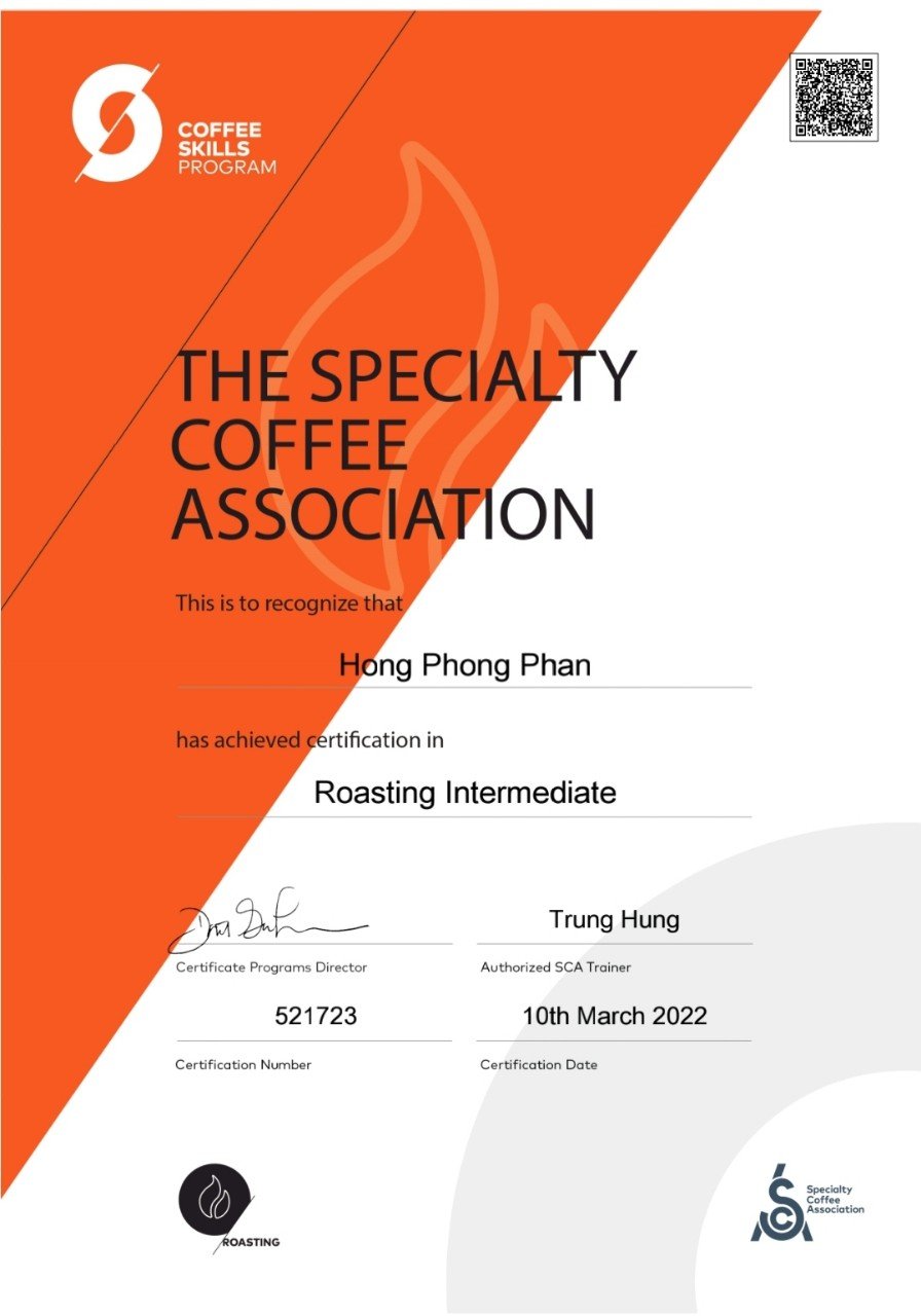 Thứ 3: Xưởng rang đạt chứng nhận ISO 22000:2018 và kỹ thuật rang được đào tạo tiêu chuẩn SCA (Hiệp hội cà phê đặc sản thế giới)
