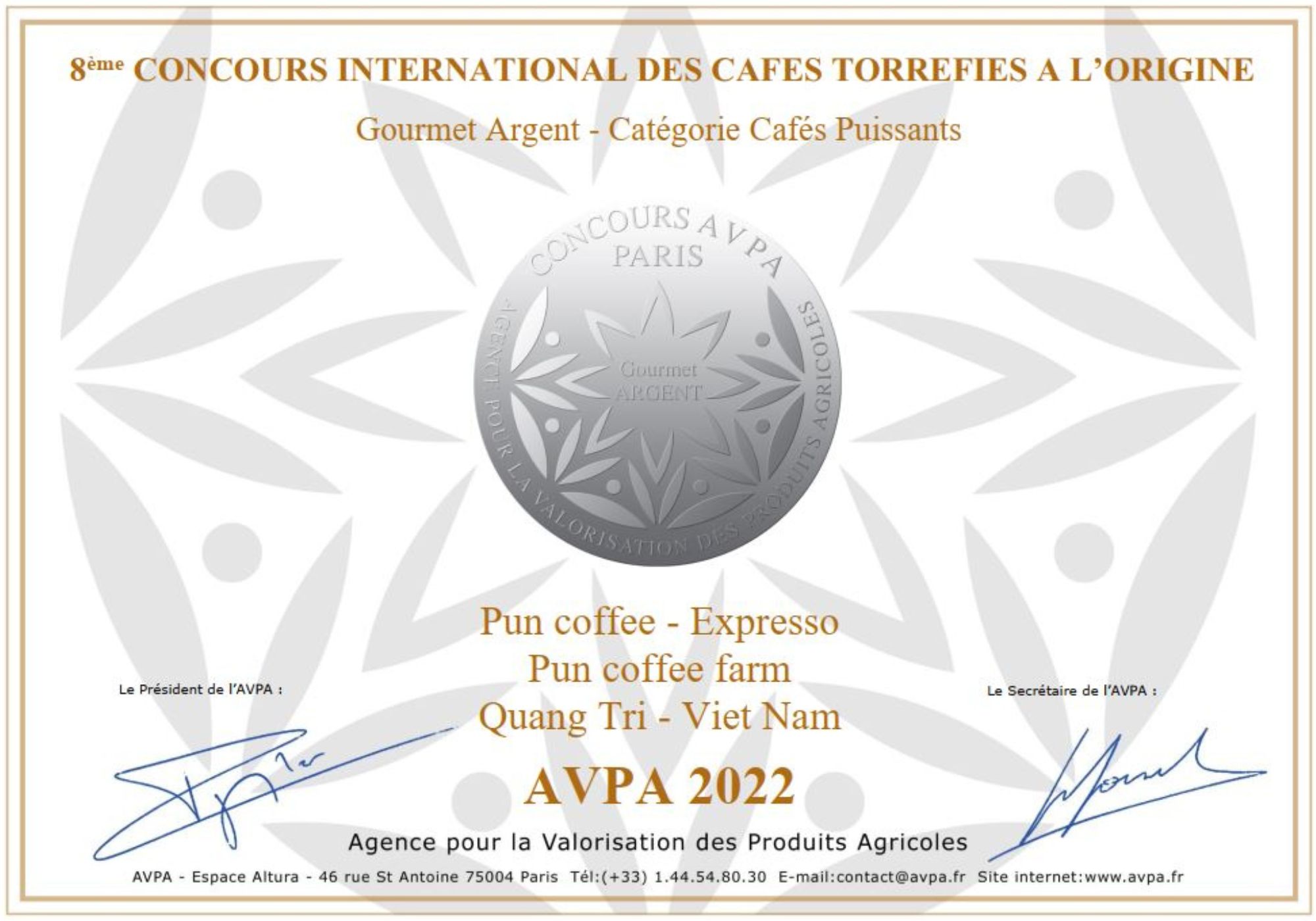 Và tụi mình cũng được giải bạc cuộc thi rang cà phê thế giới AVPA Paris 2022, mình thường hay nói với Phong nhà mình rằng, vì tụi mình phát triển chính tại vùng nguyên liệu và tối ưu vùng nguyên liệu cà phê Khe Sanh nên đi sâu hiểu bản chất hạt cà phê Khe Sanh là điều tụi mình cần đặt ưu tiên hàng đầu. Chế biến được hạt cà phê ngon và rang ra loại cà phê ngon nữa đó mới chính là GIỎI là xuất sắc ….và đến nay tụi mình cũng đủ sức gia công OEM cho nhiều thương hiêu cà phê lớn tại Việt Nam.